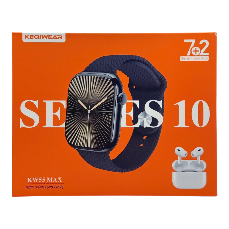 یکی از مزایای برجسته KW55 MAX، بستهبندی شیک و کامل آن است. داخل جعبه، علاوه بر ساعت، یک ایرپاد پرو طرح اپل و ۷ بند سیلیکونی متنوع قرار دارد که امکان تغییر استایل ساعت مطابق سلیقه شما را فراهم میکند. این ویژگی باعث شده تا ساعت هوشمند Keqiwear مدل KW-55 MAX گزینهای ایدهآل برای هدیه دادن نیز باشد؛ با خرید این محصول، یک پکیج کامل و ارزشمند هدیه خواهید داد که باعث رضایت و خوشحالی عزیزان شما میشود. تنوع بندها به شما این امکان را میدهد که ساعت را در محیطهای مختلف مانند محل کار، ورزش و مهمانیها متناسب با استایل خود تنظیم کنید و همیشه ظاهری هماهنگ و جذاب داشته باشید.